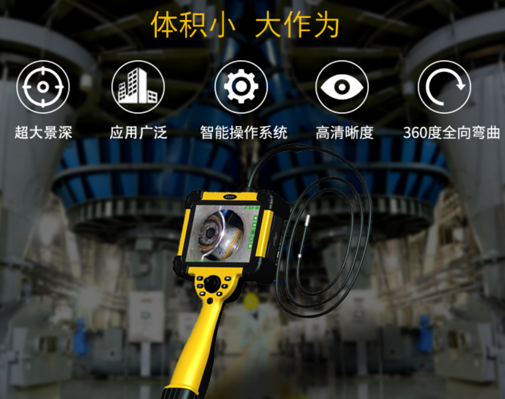 微視WS-Y系列360°任意向高清數(shù)碼工業(yè)內(nèi)窺鏡采用國際領(lǐng)先機械式操作桿技術(shù),可實現(xiàn)探頭360°全方位旋轉(zhuǎn),任何復(fù)雜的檢測環(huán)境都可對應(yīng),并且產(chǎn)品防油、防水、防腐蝕等設(shè)計,無論是在水下,還是管道都可以體現(xiàn)出其檢測功能的卓越;產(chǎn)品小巧便攜,集拍照、錄像等功能于一體;并且兼?zhèn)渑恼?,調(diào)節(jié)亮度,使被測物更清晰呈現(xiàn);數(shù)據(jù)存儲簡單方便多種方式選擇,聲音記錄,通過音頻進行檢測部位的注釋等功能于一體,是當(dāng)今工業(yè)內(nèi)窺鏡檢測行業(yè)中獨樹一幟的搞斷產(chǎn)品!微視WS-Y系列工業(yè)內(nèi)窺鏡采用IP7防水標準設(shè)計,鏡頭外殼采用不銹鋼;在管道中進行檢測,在環(huán)境比較黑暗或光線不足的地方,微了解決這個問題,微視WS-Y系列工業(yè)內(nèi)窺鏡探頭采用行業(yè)內(nèi)獨特的光纖傳輸照明,8節(jié)亮度調(diào)節(jié),并且采用高分辨工業(yè)級液晶顯示器實時觀察內(nèi)部情況;圖像清晰、操作簡單、有效探測距離長、使用范圍廣、并且可以和電腦、平板等連接實現(xiàn)存儲的優(yōu)點。
